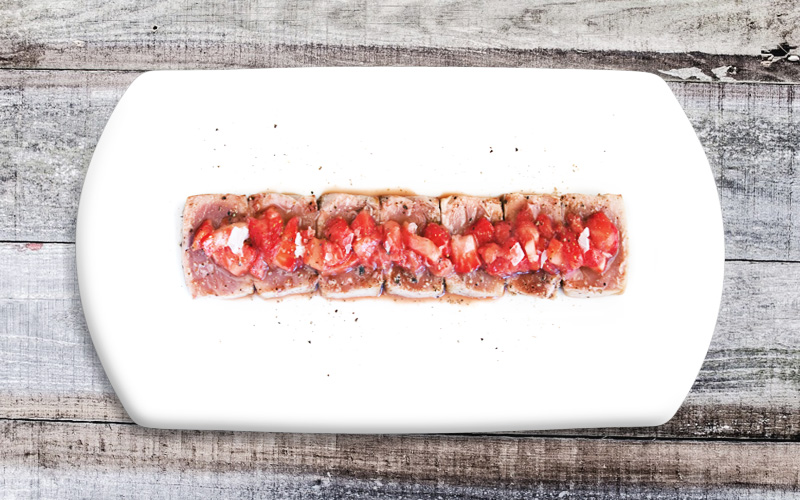 [vc_row][vc_column width=”1/4″][/vc_column][vc_column width=”1/2″][vc_column_text]1 lomo de atún 1 chorro de aceite de oliva virgen extra fresas cortadas en dados 1 chorro de agridulce de Merlot Castell de […]